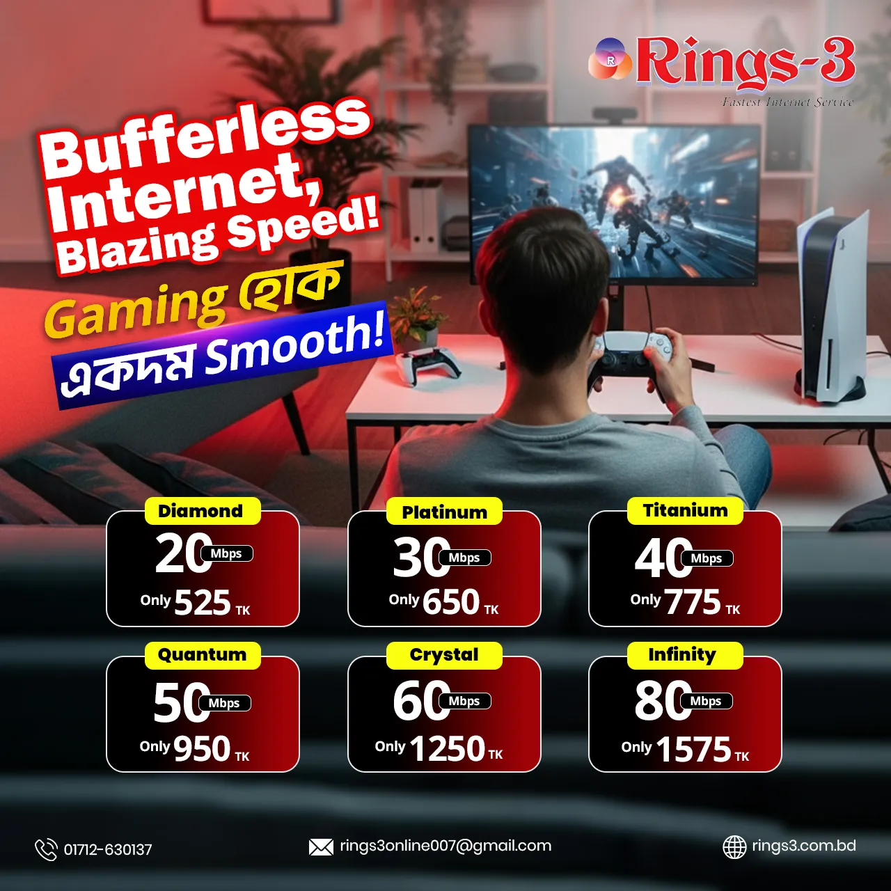 Rings-3 উন্নত ফাইবার নেটওয়ার্কের মাধ্যমে সব সময় স্থির ও নির্ভরযোগ্য ইন্টারনেট স্পিড নিশ্চিত করে।